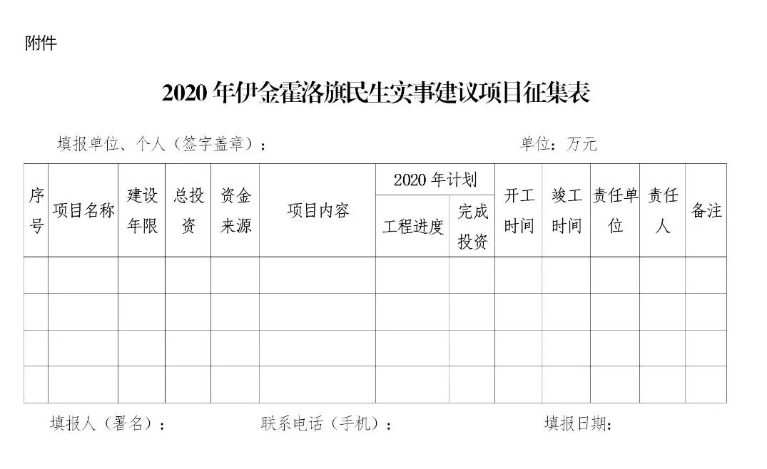 (二)面向各镇、旗直各单位和“两代表一委员”征集的项目。建议项目要按照《2020年o365邮箱登录_365bet滚球网站_365bet体育在线15民生实事建议项目征集表》要求规范填报,征集表可通过党政公文交换系统或o365邮箱登录_365bet滚球网站_365bet体育在线15人民政府门户网站下载,网址:http://www.yjhl.gov.cn。